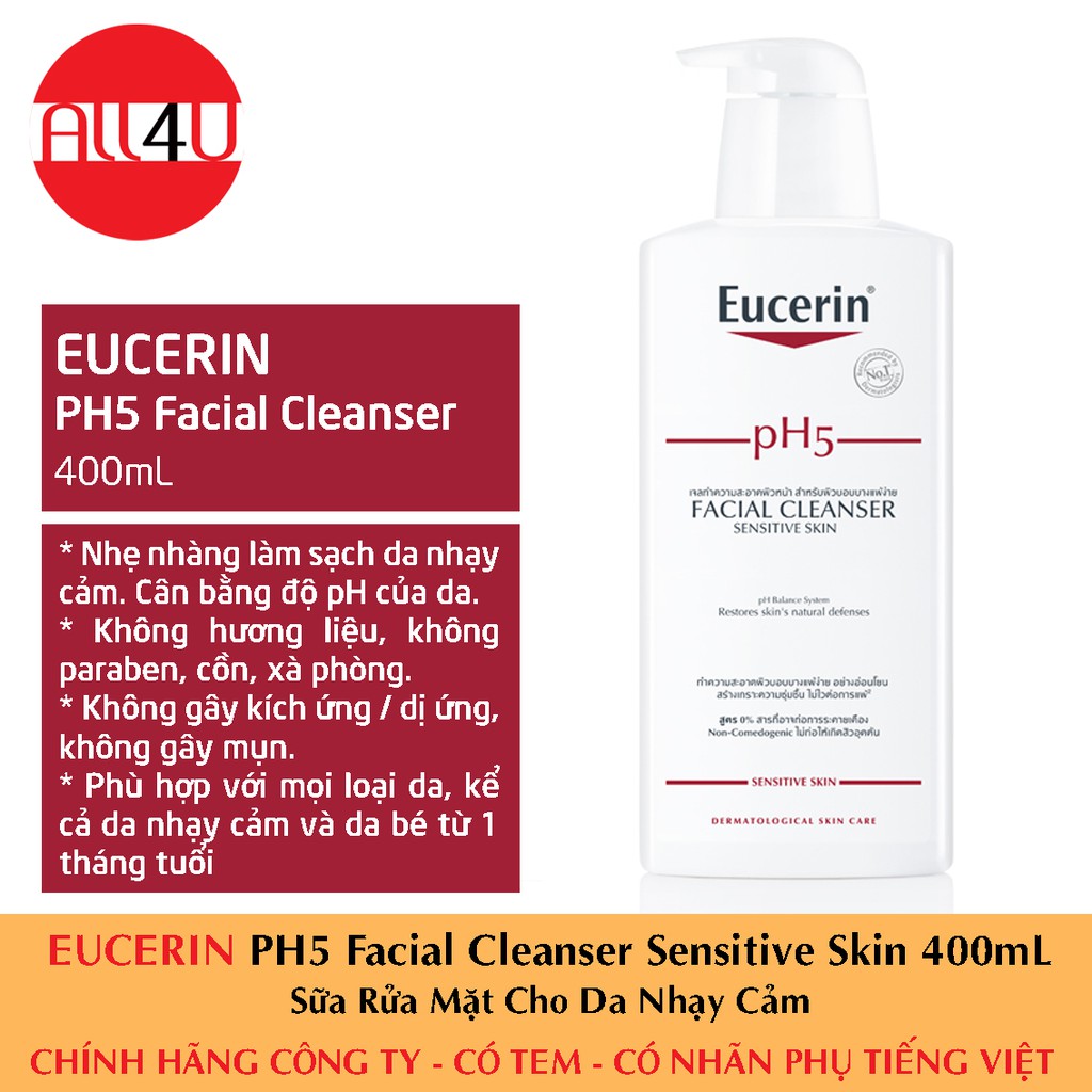 Freeship- [CHÍNH HÃNG CÓ TEM] Eucerin PH5 Facial Cleanser Sensitive Skin 400mL - Sữa Rửa Mặt Cho Da Nhạy Cảm. mua tại đây